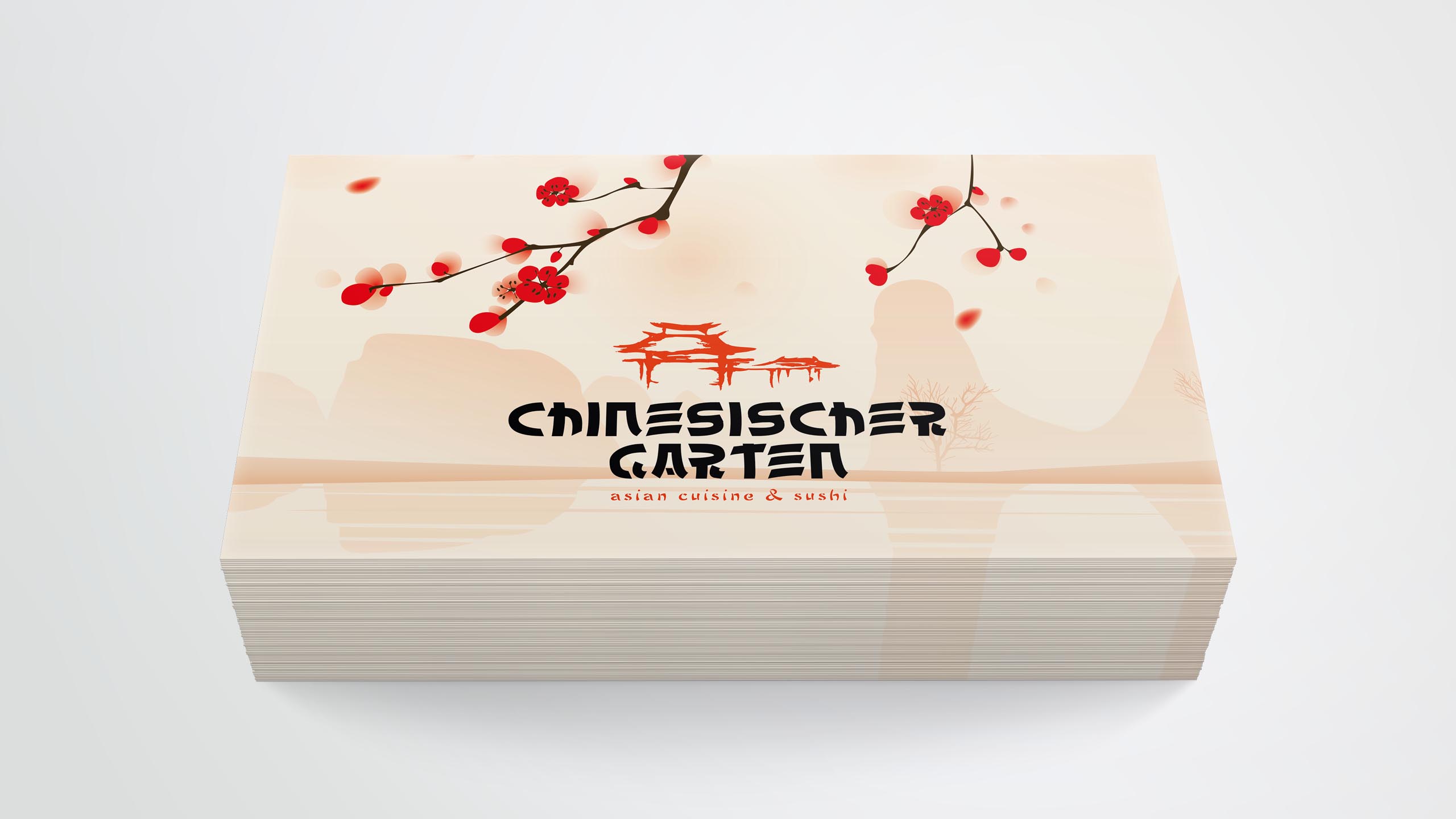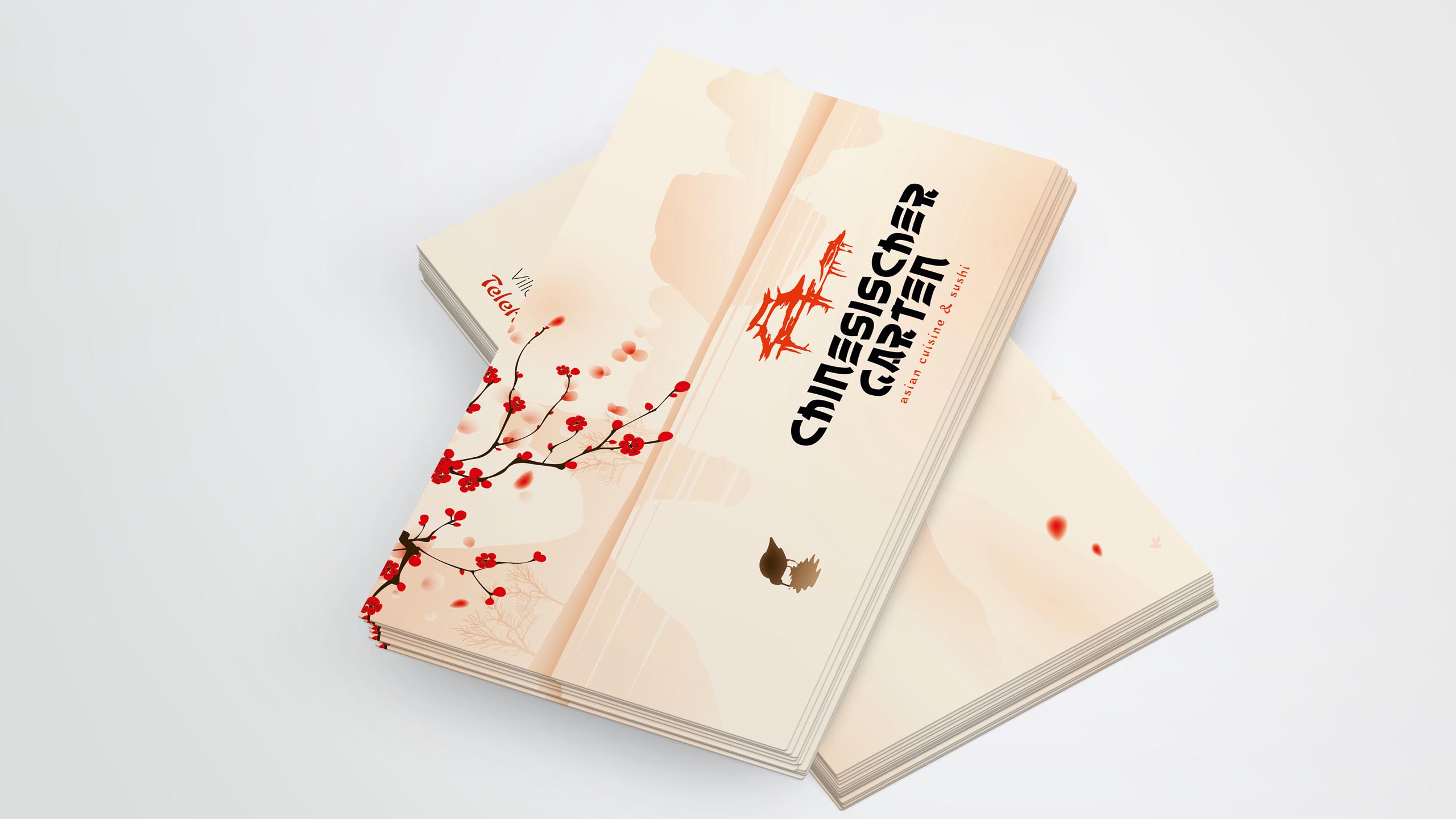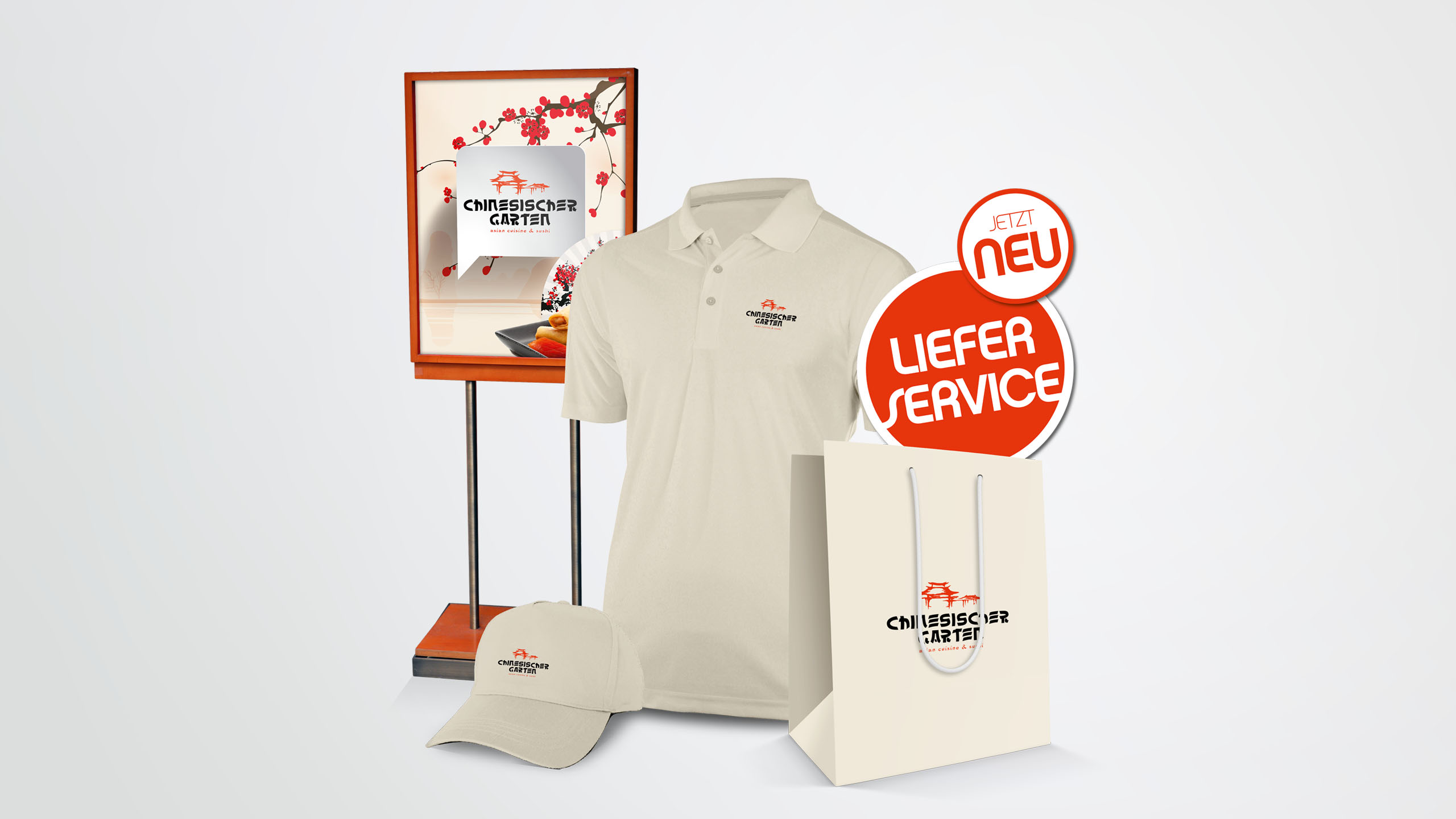 tradition kombiniert mit moderne. typisch chinesische elemente mit stilvoller typograhpie vereint lassen den chinesischen garten in einem neuen, klaren look mit asiatischen stimmungselementen erscheinen. restaurant und lieferservice teilen sich dabei eine einheitliche corporate werbelinie für eine starke, schnelle wiedererkennung.