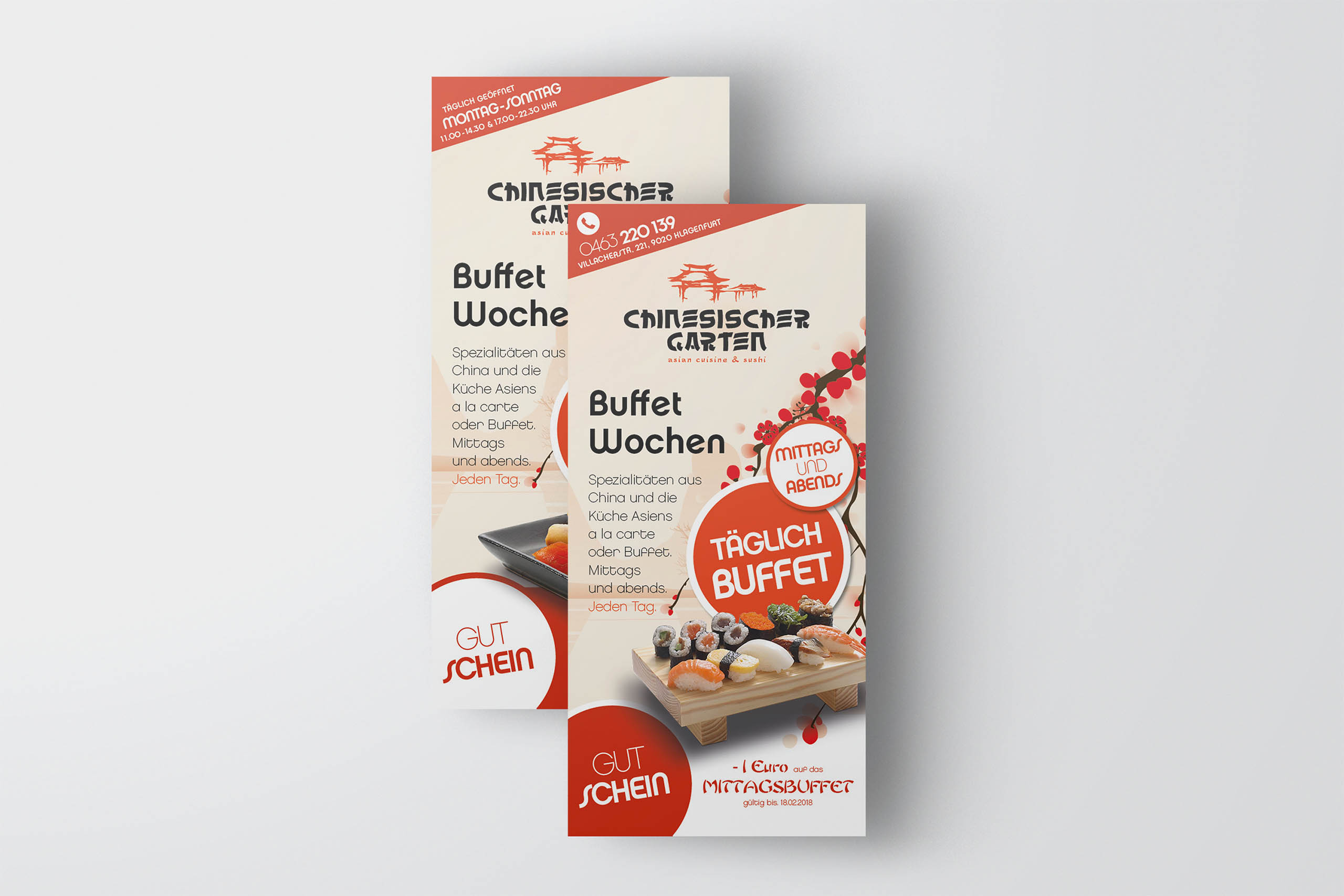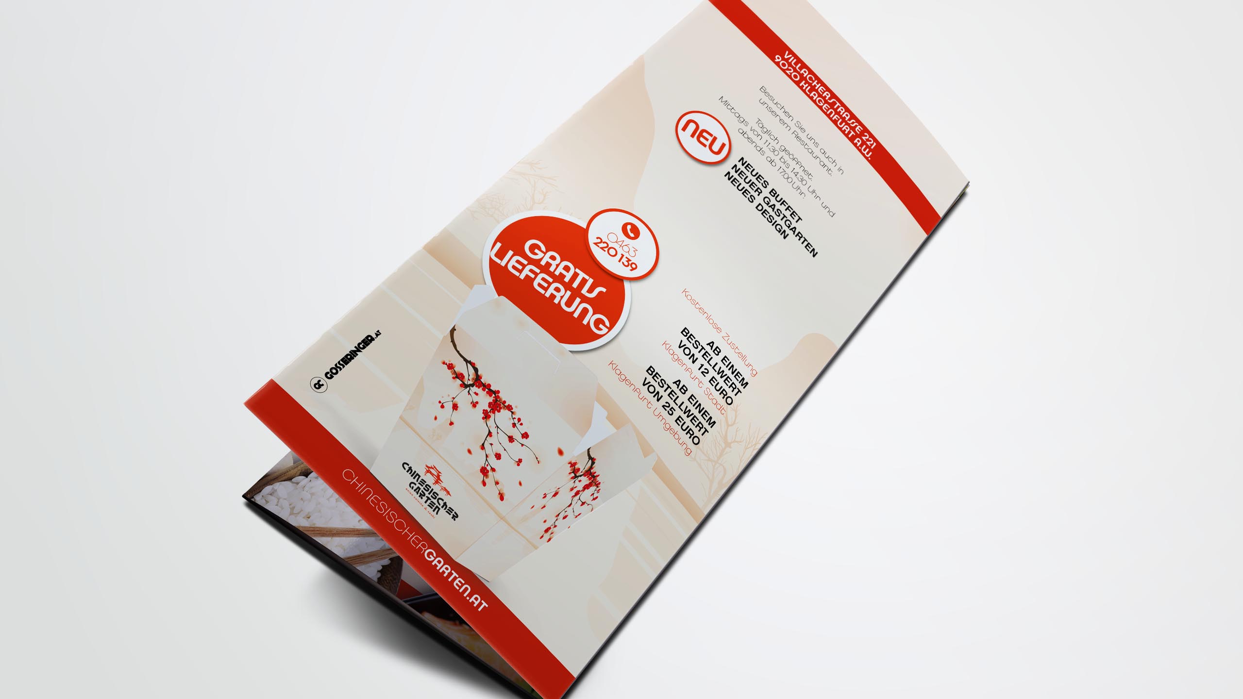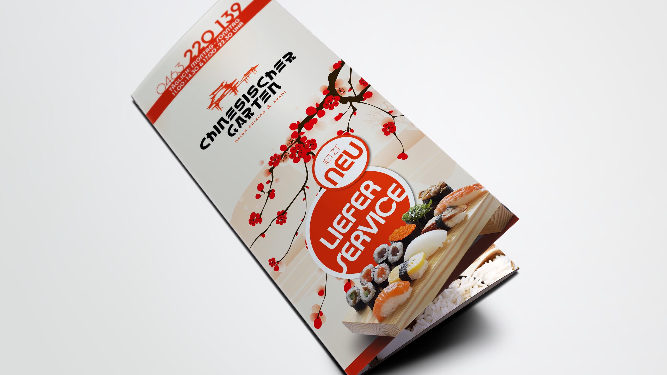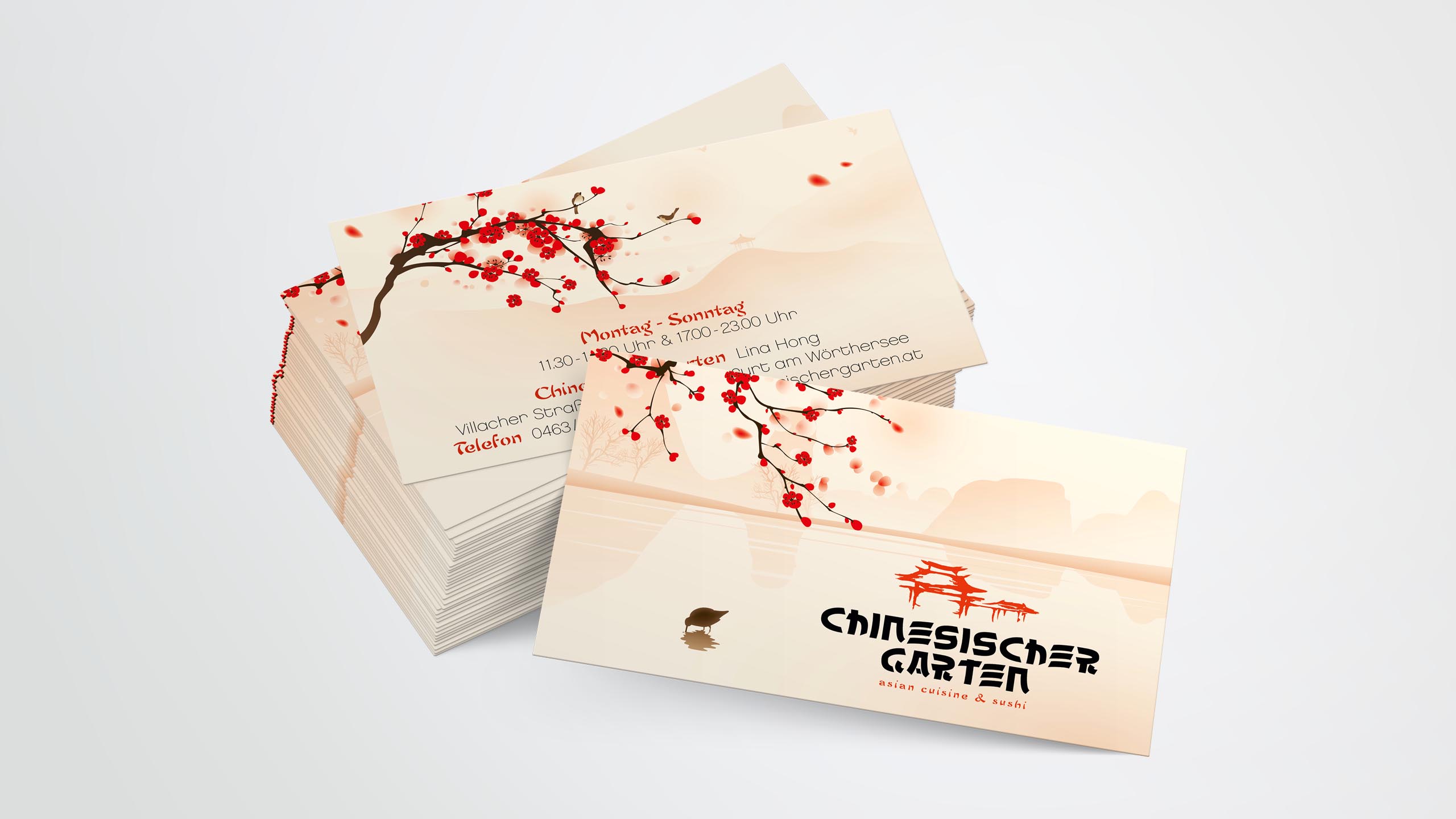 tradition kombiniert mit moderne. typisch chinesische elemente mit stilvoller typograhpie vereint lassen den chinesischen garten in einem neuen, klaren look mit asiatischen stimmungselementen erscheinen. restaurant und lieferservice teilen sich dabei eine einheitliche corporate werbelinie für eine starke, schnelle wiedererkennung.
