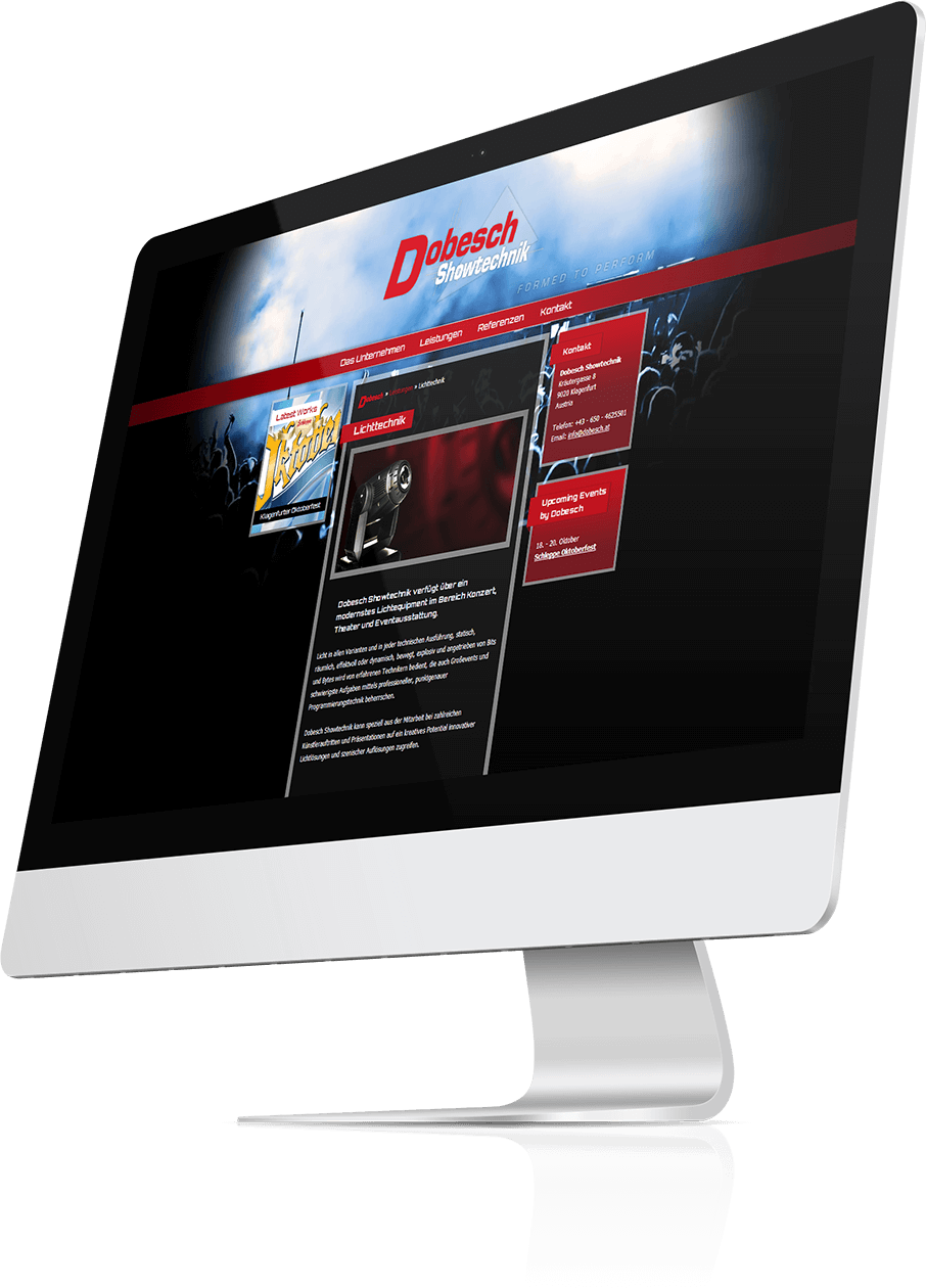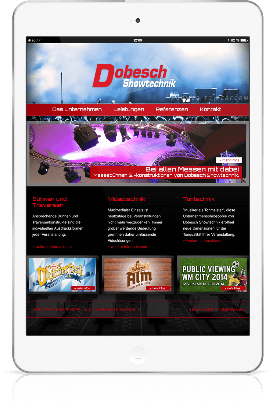 dobesch showtechnik, ein kunde der ersten stunden von GÖSSERINGER, setzte nach langer betreuung bei zahlreichen projekten im design- und layoutbereich auch beim relaunch seiner website auf die vertrauten design- und programmierkünste. das vertrauen ehrt.