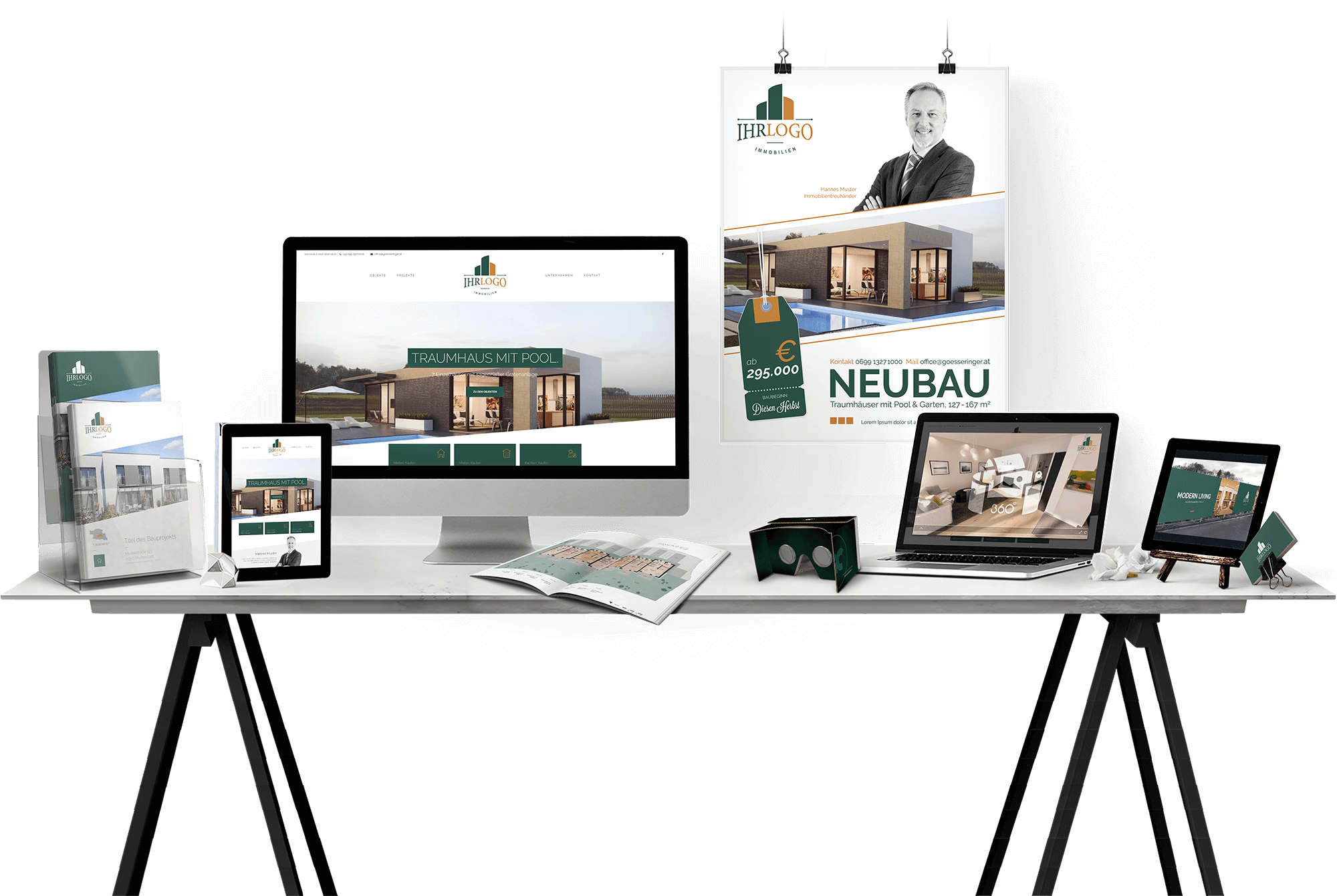 we create a modularly definable presentation and sales package based on your 2D floorplan. with high-quality exterior and interior visualisations for print and web. on request, also with a virtual tour via computer, tablet or smartphone directly on the web. with or without VR glasses.