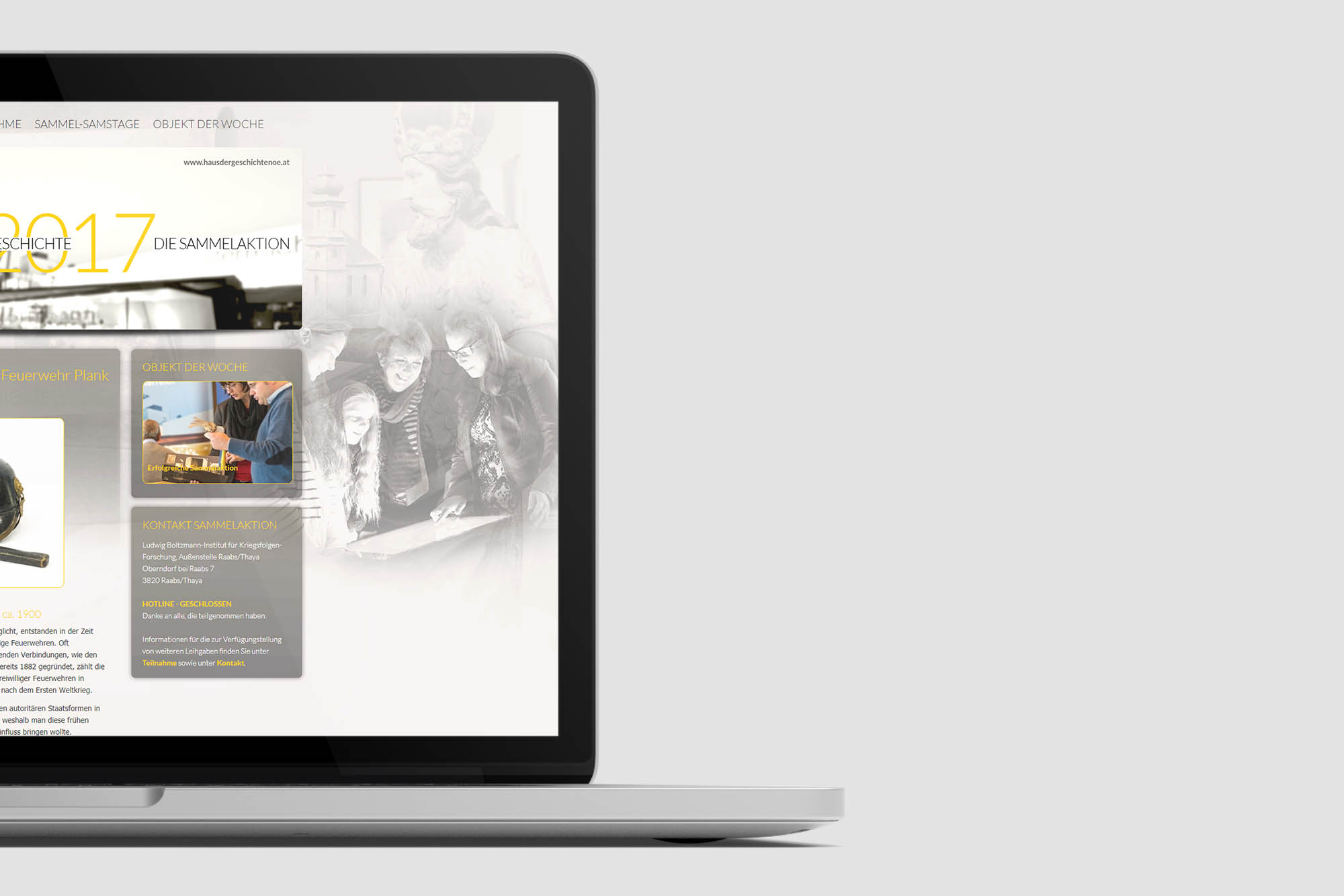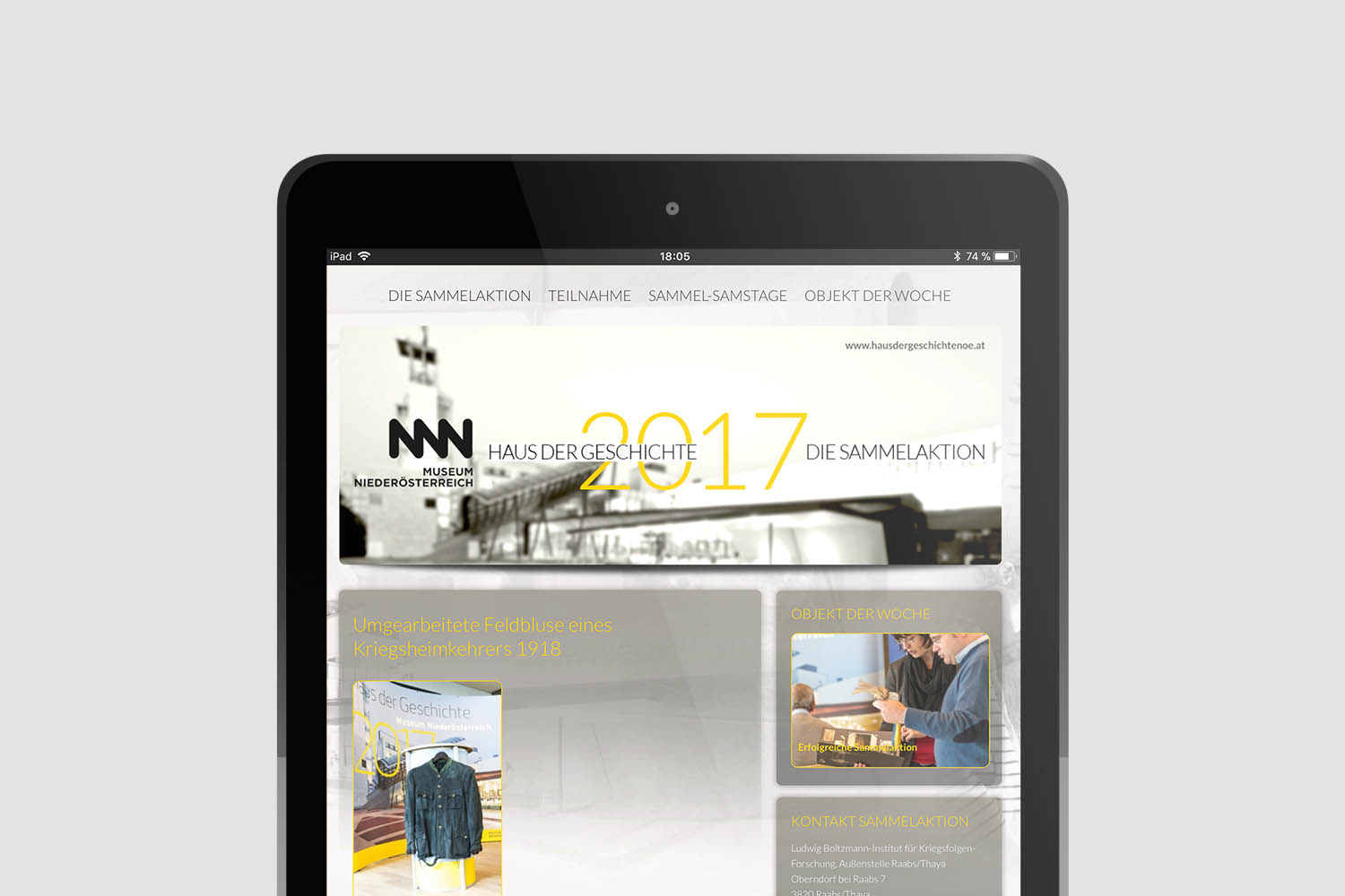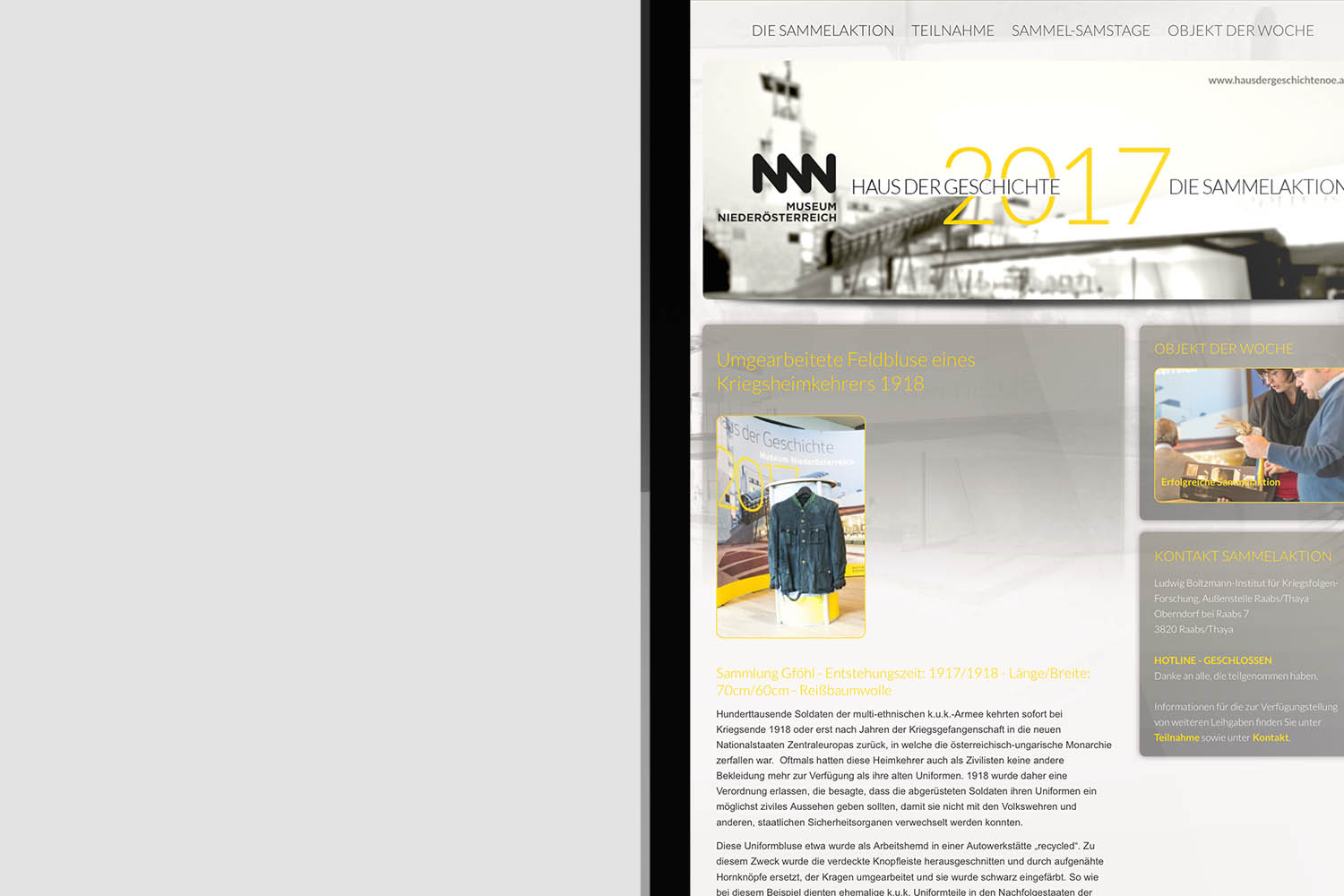 GÖSSERINGER wurde mit der erstellung und betreuung der website zur sammelaktion betreut, bei der leihgaben für die ausstellung abgegeben und von historikern wissenschaftlich untersucht werden konnten. hinweisetafeln, schilder, leitsysteme und infografiken wurden in der vorbereitungsphase ebenso in enger zusamenarbeit mit der historikerkommission des ludwig boltzmann instituts umgesetzt.