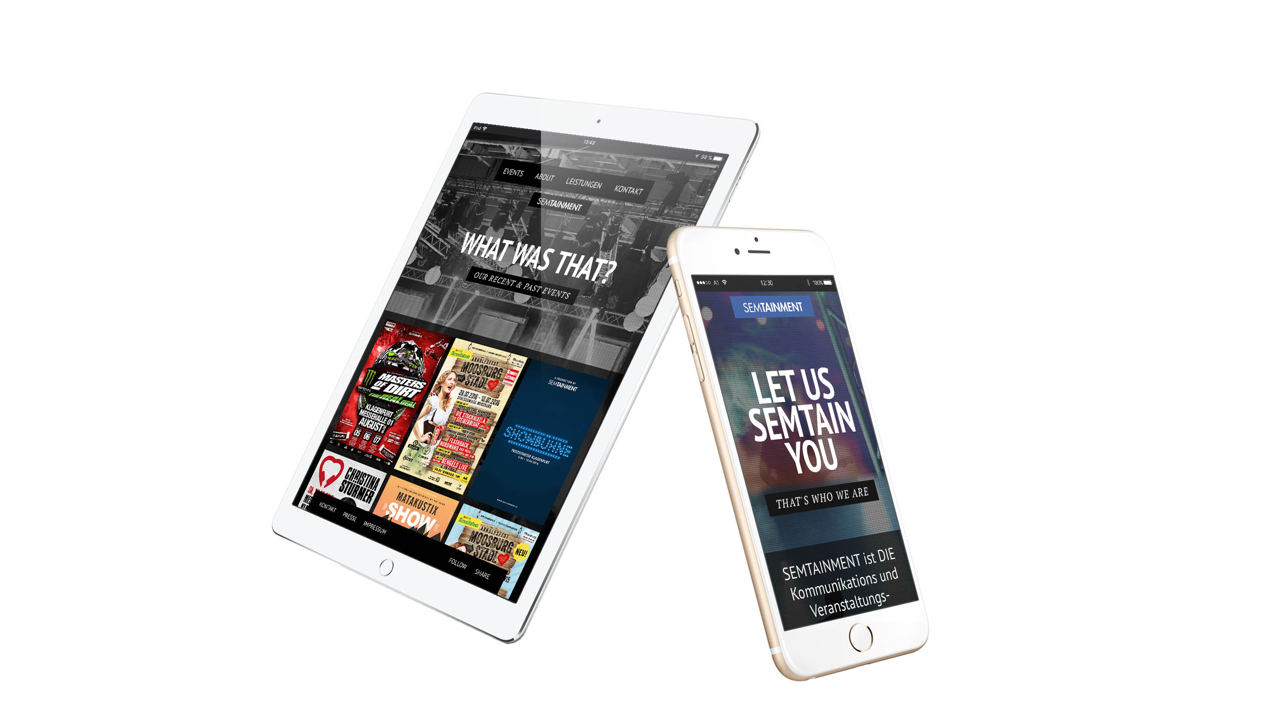 bei der entwicklung der website war es ziel eine moderne homebase für sämtliche bewerbungen aller veranstaltungen von semtainment zu schaffen. responsive optimiert für alle endgeräte ist die site dabei flexibel strukturiert und aufgebaut um mit wiedererkennbaren stil- und layoutelementen größeren produktionen als eigenständige landingpage und eventwebsite zu dienen (masters of dirt, matakustix show, electric dome, u.m.)